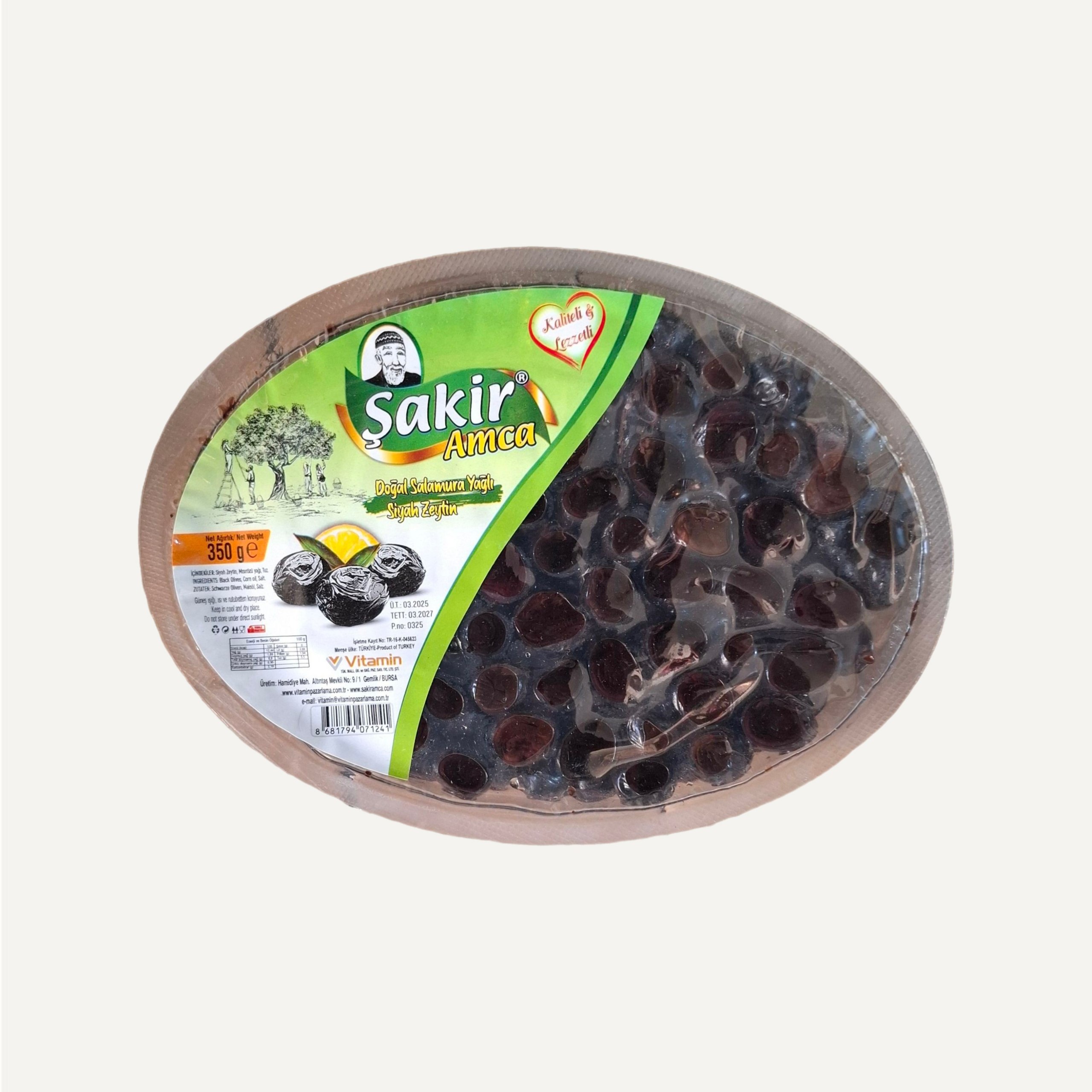 زیتون سیاه Şakir بدون مواد نگهدارنده شیمیایی و با فرآوری سنتی تهیه شده است.