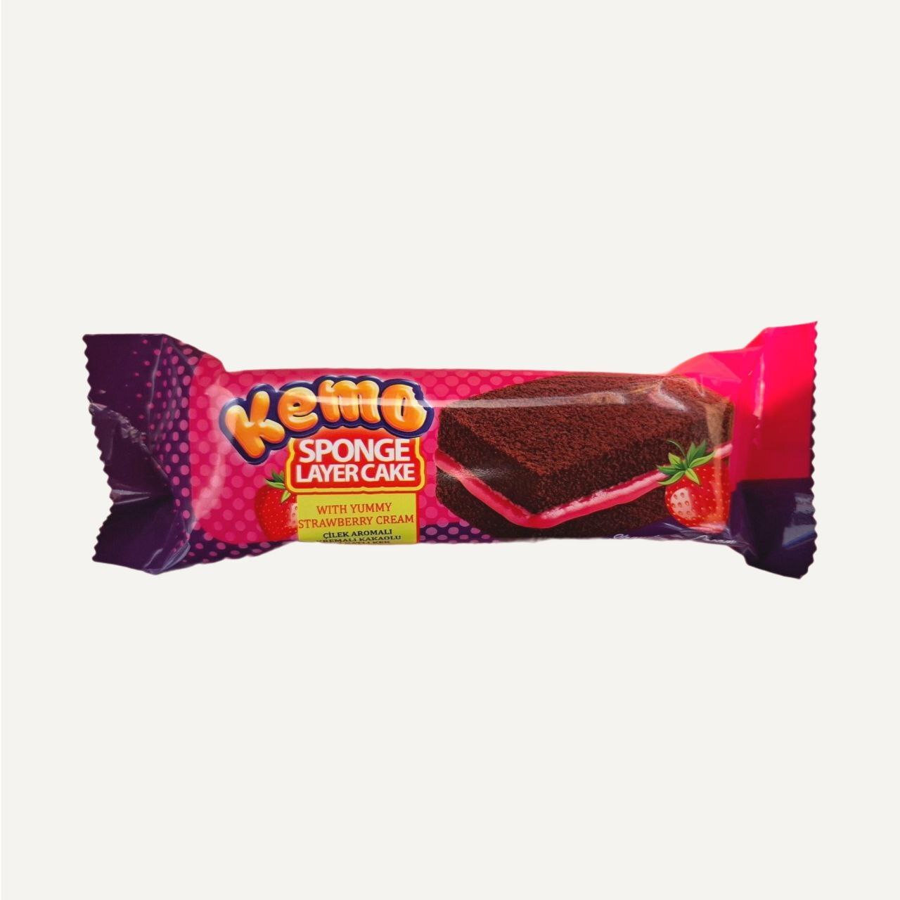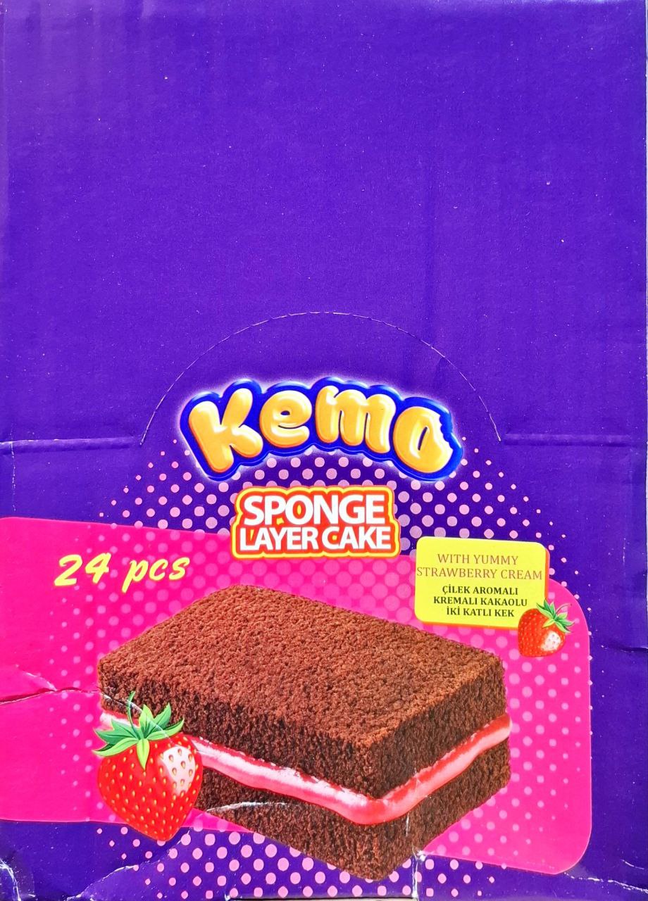 کیک اسفنجی لایهای KEMO با کرم توتفرنگی، میانوعدهای نرم، شیرین و خوشطعم برای لحظههای دلپذیر روزانه است.
