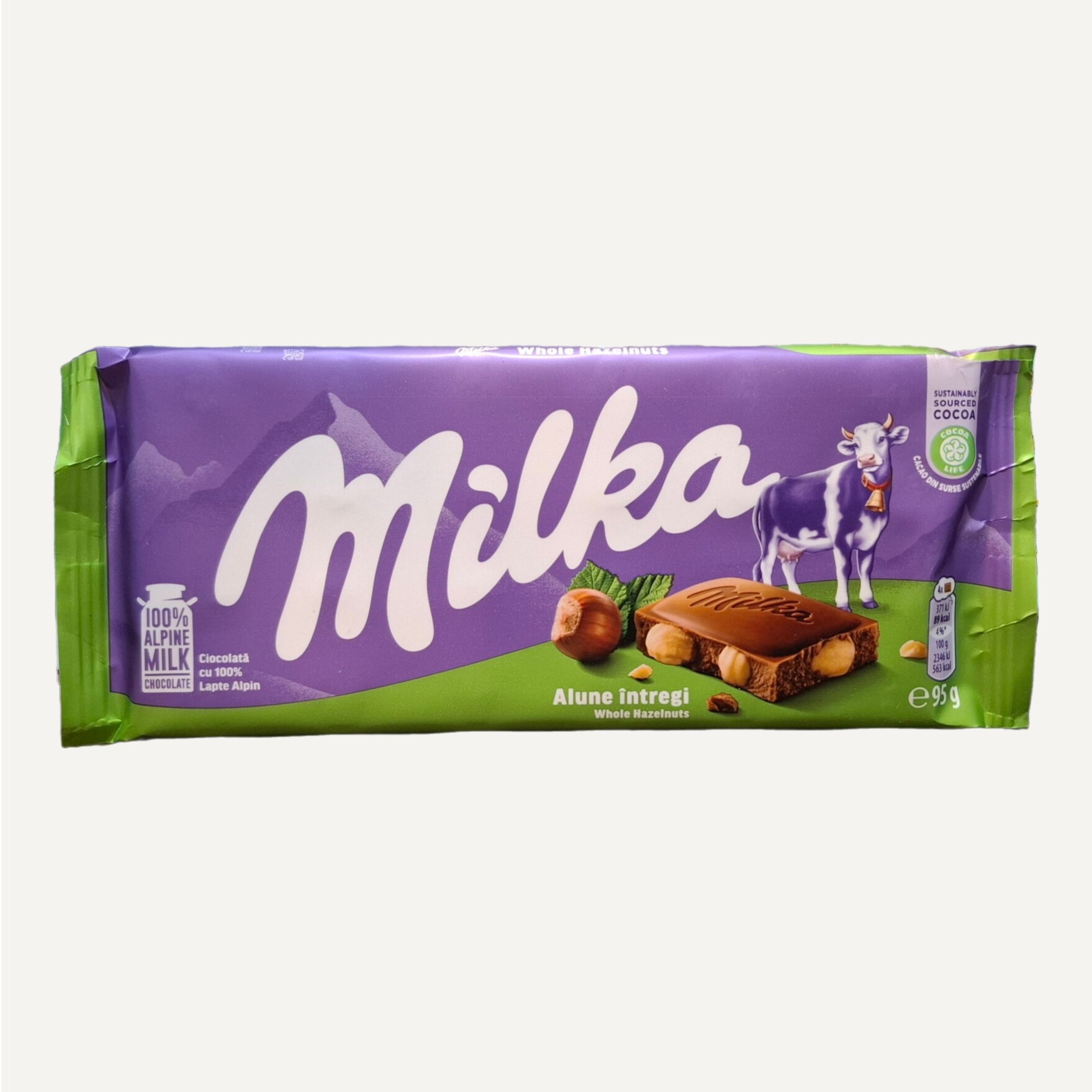شکلات میلکا Whole Hazelnuts ترکیبی بی‌نظیر از شکلات شیری آلپی و فندق‌های کامل و تازه است.