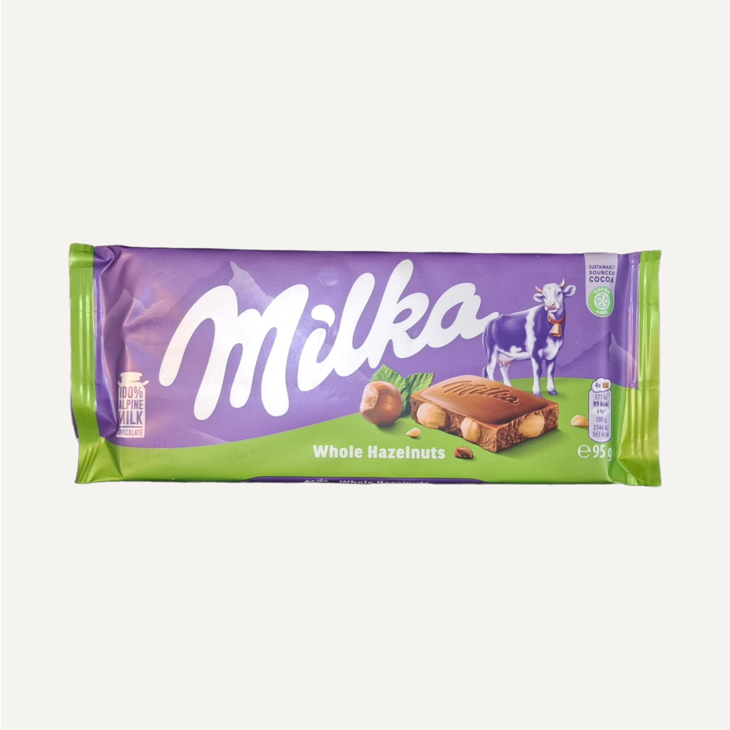 شکلات میلکا Whole Hazelnuts ترکیبی بی‌نظیر از شکلات شیری آلپی و فندق‌های کامل و تازه است.