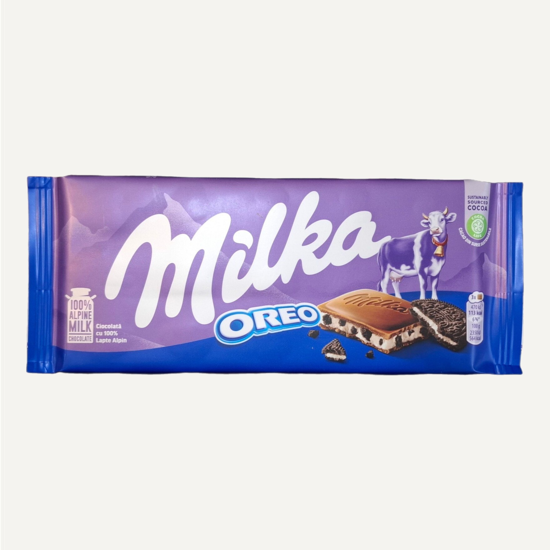 شکلات میلکا Oreo ترکیبی بینظیر از شکلات شیری آلپی و خامه و تکههای بیسکویت اورئو است.